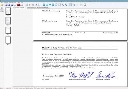 signoSign/2 je software, který umožňuje podepisovat elektronické dokumenty vlastnoručním podpisem prostřednictvím padů. signoSign/2 vychází z úspěšné verze softwaru signoSign společnosti Signotec GmbH. Software signoSign/2 je plně funkčním softwarem, který lze uživatelsky snadno instalovat na pracovní stanice a nabízí níže popsané funkcionality. Tam, kde je to účelné, je rovněž možné signoSign/2 zahrnout a integrovat do rozsáhlých řešení, která jsou budována s cílem omezit dokumenty v listinné podobě. V případě, že nevznikají dokumenty v listinné podobě, není nutná jejich digitalizace, což má za následek zrychlení firemních procesů, okamžitý přístup k informacím uloženým v elektronických dokumentech a snadné vyhledávání v obsahu takto podepsaných dokumentů. Odpadají náklady na digitalizaci, klasickou archivaci dokumentů i náklady související s přepisem. Eliminuje se riziko možných chyb při přepisu dokumentů. Rozdíl v procesech ve zpracování dokumentů klasickým způsobem a prostřednictvím biometrického podpisu viz níže. Podobnou funkcionalitu jako signoSign/2 lze rovněž získat prostřednictvím API softwaru, pokud bude funkcionalita biometrického podpisu implementována přímo do požadované aplikace. Software signoSign/2 převede data z různých formátů do PDF formátu a následně data v PDF formátu umožní podepsat vlastnoručním podpisem v elektronické formě. Podpis v dokumentu má podobu obrázku, zároveň jsou uloženy jedinečné charakteristiky podpisu v tzv. digsig field, který je neoddělitelnou a neměnitelnou součástí PDF – A standard dokumentů společnosti Adobe, určených pro dlouhodobou archivaci. Dokument lze připodepsat, nelze jej však měnit, což má za následek vysokou validitu obsahu takto podepsaného dokumentu. V případě potřeby je možné prostřednictvím auditního softwaru zkoumat pravost podpisu. Podepsané dokumenty lze ukládat v určených úložištích, odesílat mailem a pracovat s nimi v podobném režimu jako s dokumenty v listinné podobě. Dokumenty lze opatřit i časovým razítkem, případně elektronickým podpisem. Software signoSign/2 je dostupný ve verzi 32 bit a 64 bit. Certifikát TÜV naleznete v sekci Dokumentace/Certifikáty. |